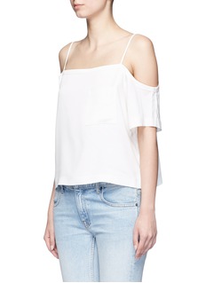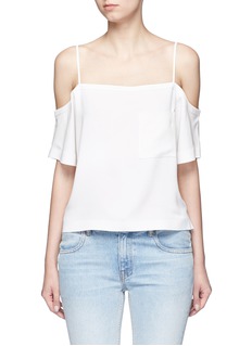 T by Alexander Wang以清新活力的风格演绎这款露肩装,肩部附可调节细肩带,展现您精致优雅的魅力。正面一个方形口袋,为简约风格注入细节感,质感挺括的衣摆打造出更为丰盈的轮廓效果。不妨搭配牛仔裤,便是一个休闲优雅的淑女造型。