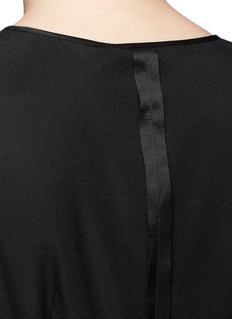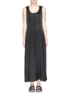 T by Alexander Wang擅长将休闲运动风融合简约大气格调,这款连衣长裙采用缎面斜纹布打造,于灯光下呈现微微光泽,没有花巧细节,简单以不修边布条拼接正面及背面,与优雅的衩摆相映成趣,碰撞出别具一格的摩登都市气息。