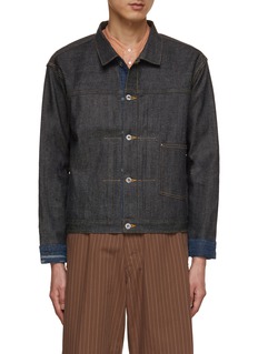 Discover Taiga Takahashi's contemporary urban staples featuring this classic denim jacket. Rendered in a versatile dark wash, its clean finish is elevated by the contrasting top stitching. Style this simple number with a multitude of styles.