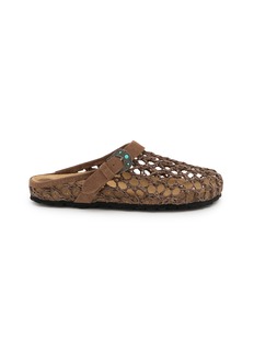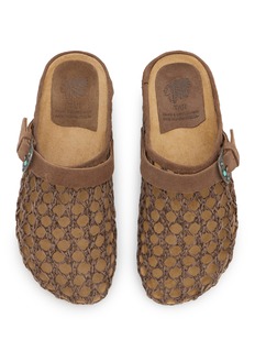 Taji 是意大利鞋履品牌,以印第安旅行符号“Taji”为图腾,将美洲草原的辽阔与自由缝进每一双鞋,让穿着者把远方的风与故事随身带走。这款穆勒鞋配有绿松石色点缀,鞋面采用镂空编织面料,配有符合人体工学的鞋底。