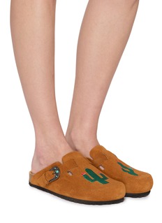 Taji 是意大利鞋履品牌,以印第安旅行符号“Taji”为图腾,将美洲草原的辽阔与自由缝进每一双鞋,让穿着者把远方的风与故事随身带走。这款穆勒鞋配有绿松石色点缀与刺绣细节,鞋面采用绒面皮革面料,配有符合人体工学的鞋底。