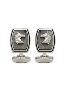 Capture the essence of classic equestrian elegance with Tateossian's Cufflinks. These striking cufflinks feature a meticulously sculpted horse head, set against a lustrous mother-of-pearl backdrop within a polished silver frame. The detailed craftsmanship and noble theme make these cufflinks a perfect accessory for the style-conscious gentleman with an appreciation for traditional motifs.