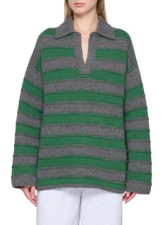 A study in relaxed refinement, this rugby sweater is rendered in sumptuous heavyweight cashmere with fern stripes lending quiet rhythm to the knit. Designed for effortless layering, it pairs seamlessly with tailored trousers or relaxed lounge pants for refined off-duty moments.
