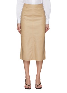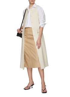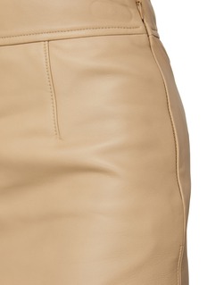 成立于美国纽约的 The Frankie Shop 不拘泥于一种风格,而是以更加多元化的设计为所有热爱时尚的女生提供各式各样独特而小众的服饰。这款铅笔群用缝线交叉拼接细节和质感皮质为一件简单单品带来别样魅力。
