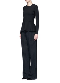The Row这款弹力上衣完美演绎出单色设计的可塑性。下摆拼接的荷叶边饰为平凡的纯黑设计注入自然流畅的波浪美感,亦可突显腰部的曲线,瞬间提升您的甜美女性魅力。