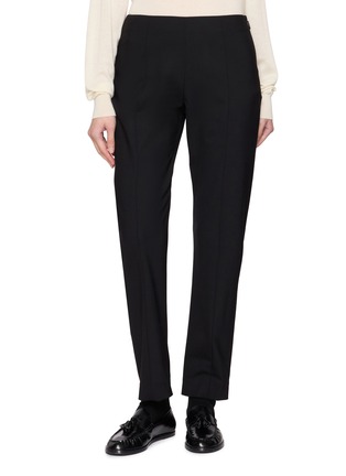 The Row 巧用面料和剪裁,一展体现“引人注目”的低调奢华魅力。这款长裤以挺括面料勾勒锥形版型,侧拉链开合设计更显简约利落。
