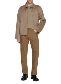 The Row lends everyday outerwear an elevated refinement with the Dantes jacket. Tailored from cashmere, it strikes a balance between utility and elegance through its clean lines, side pockets, and zipped front. A transitional staple with a quietly confident presence.