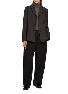 The Row 用轮廓勾勒优雅,质感中自生力量。这款西服外套以轻盈丝质斜纹面料打造,经典单排扣设计搭配驳领与翻盖口袋,融合结构感与柔和线条,轻松演绎都市女性的干练气质。