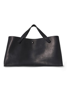 The Row 追求优雅而宁静,时尚而不枯燥的简约设计。这款宽手柄手提包采用抛光马鞍皮革制成,内设有可拆卸的内袋,中间按扣开合。