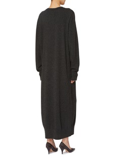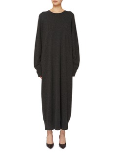 The Row 擅长用质感传递风格,这款裙装以圆领轮廓强化舒展气质,宽松针织剪裁兼顾舒适与造型,加长版型延伸身形比例,自带低调的优雅氛围。