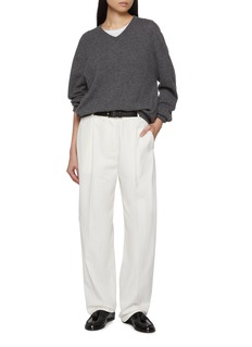 The Row 用轮廓勾勒优雅,质感中自生力量。这款高腰精裁长裤,采用质感混纺面料,裤腿略呈锥形,配有前压褶和侧斜插袋,定格日常中的气质高光时刻。