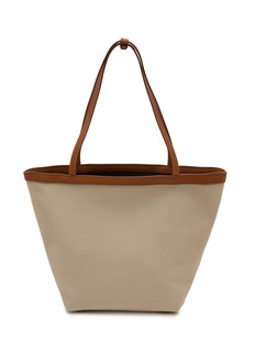 The Row 用轮廓勾勒优雅,质感中自生力量。这款经典托特包采用纹理感棉斜纹布材质,可双面翻转使用,搭配鞍革饰边和手提扣带设计,饰有可拆卸拉链小包。