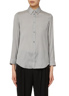 The Row 巧用面料和剪裁,一展体现“引人注目”的低调奢华魅力。这款系扣衬衫采用条纹真丝府绸面料,配有五分袖、窄后过肩、外露前襟,以及珍珠母纽扣。