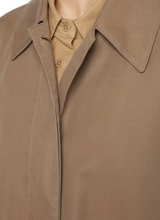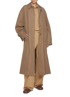 The Row 这款 Rocco 外套诠释了品牌一贯的极简主义与低调奢华。采用优质棉质羊绒混纺面料制成,手感柔软却具结构感,呈现出略带廓形的长款剪裁。搭配隐形纽扣门襟,整体线条利落纯净,演绎随性却不失精致的穿着质感。