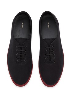 The Row 追求优雅而宁静,时尚而不枯燥的简约设计。这款运动鞋脱胎自传统的胶底体操鞋,设圆头和绑带式鞋面。其采用米色帆布制成,内衬柔软真皮,橡胶鞋底更添舒适度。