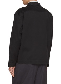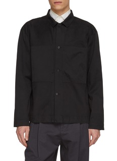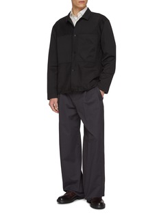 The Row channels a refined utilitarian mood in this crisp jacket. Its structured lines and timeless black hue introduces quiet depth. A transitional layer with a minimalist spirit, ideal for grounding tailored or off-duty looks.