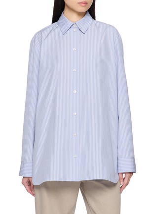 The Row 巧用面料和剪裁,一展体现“引人注目”的低调奢华魅力。这款衬衫以经典条纹元素打造,结合略宽松版型勾勒休闲摩登气息。