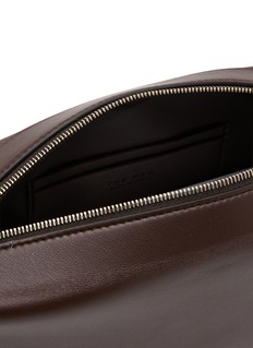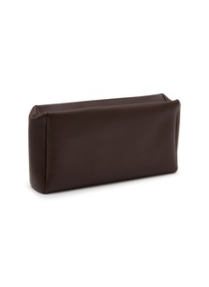 The Row 以轻盈笔触致敬极简主义美学。这款长方形手拿包,采用卵石纹小牛皮材质,搭配柔褶包顶、立体侧边风琴褶及拉链开合设计。