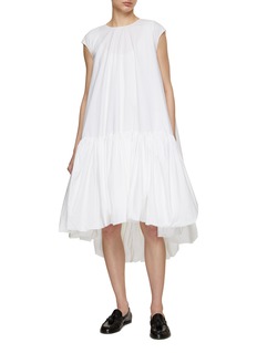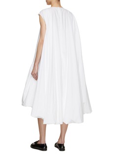 The Row 这款连衣裙采用重磅棉质府绸制成,无袖灯笼造型带来俏皮风格。搭配缩褶下摆、造型肩部提升量感,步履间散发优雅魅力。