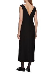 The Telorin Dress is an ankle-length dress designed with a captivating V-neckline and a flattering, streamlined silhouette. This dress offers a sleek and minimalist look, perfect for all occasions.