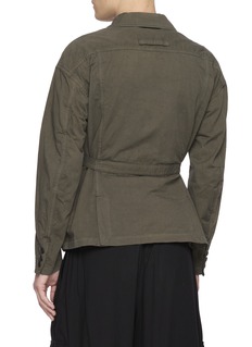 The Viridi-anne adds dimensionality to your daily dressing with this button-up jacket. Featuring a belted waist, that defines the waist, this piece evokes a sense of contemporary polish. Pair with relaxed fit cargo pants to channel a refined, modern rhythm.