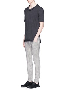 这款The Viridi-anne的长裤一如既往以沉色设计为主打,灰色棉质表面呈现自然的水洗效果,设计师特意把口袋放于较低位置,塑造独一无二的前卫效果,配以流畅的锥形剪裁,既摩登又可修饰腿线,是个性男士的首选。