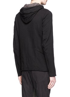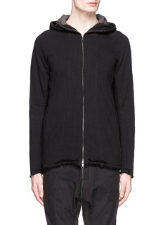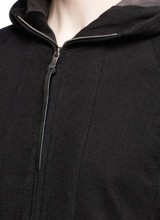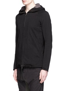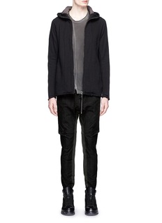 The Viridi-anne擅长以卓越剪裁和细节设计吸人眼球,这款外套设计简约,帽子内侧的灰色亚麻面料拼接带来低调的变化感,不修边袖口、卷边下摆呈现出随性不羁气息,为您的造型带来别样的时尚创意。