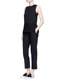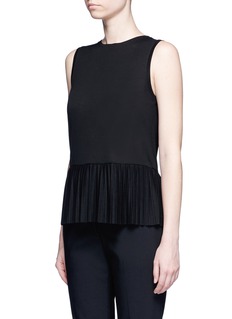 希尔瑞这款上衣触感柔软舒适,下半部分工整的百褶拼接迎合今季的大热元素,亦与平顺的上半部分形成视觉对比,为纯黑设计带来甜美变奏。
