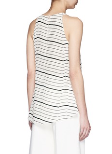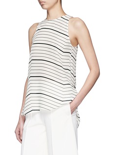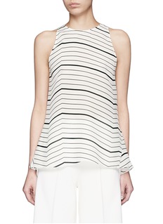 希尔瑞这款背心采用真丝绉绸制作,面料纹理与粗细不同的斜向折纹互相呼应,展示清新趣味。A字形剪裁与轻盈面料打造出立体飘逸廓形,走路时随风轻摆,十分适合搭配裁短阔腿裤或半身裙,塑造摩登随性的都市形象。