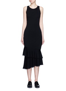 这款希尔瑞的连衣裙延续了品牌的极简作风,柔软的弹力针织面料完美贴合身体,彰显女性优美的身段,裙摆加入不对称荷叶边拼接,并以须边点缀,既富层次感又不失随性格调,可随心搭配不同鞋履,展现鲜明的个人风格。