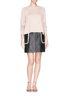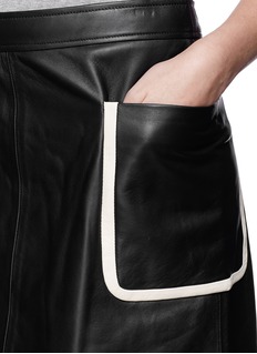 Theory's extraordinary vision for ambient pieces in crisp silhouettes is communicated to grand effect in this mod-inspired leather skirt. This grainy lambskin version cuts an edge of cool with a straight A-line fit and perennially darling pocket binding details.