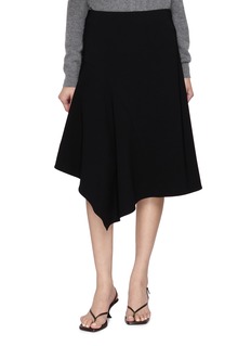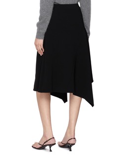 Fluid architecture defines this draped panel skirt, sculpted in Japanese Admiral Crepe for a smooth, immaculate fall. The asymmetrical hem creates quiet movement with each step, lending elegance from office hours to evening transitions.