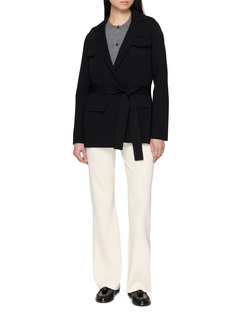 Soft structure meets clean precision in this relaxed compact blazer, cut with a fluid drape that elevates Theory’s minimalist ethos. Four flap pockets and a self-tie belt lend subtle utility, making it an effortless piece for weekday polish or weekend refinement.