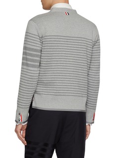 Thom Browne, where traditional tailoring meets modern aesthetics. Detailed with the label's iconic 4-bar stripe, this cardigan is crafted with tonal stripes to elevate your day-to-day looks.