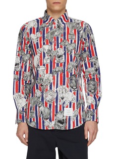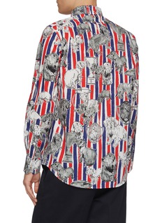 An emblem of Thom Browne’s playful precision, this long-sleeve shirt reworks classic American striping with the iconic Hector motif. Crisp cotton poplin anchors the graphic narrative, balancing tailored sharpness with character-driven wit—ideal for elevating weekday tailoring or styling down with modern trousers.