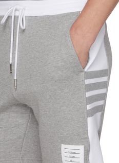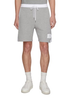Crafted from soft cotton jersey, these drawstring sweatshorts reflect Thom Browne’s disciplined take on casual dressing. A colour-blocked side panel punctuated with the signature 4-bar motif adds graphic structure, making them a refined choice for relaxed days styled with intent.