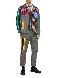 Thom Browne 这款长裤采用羊毛面料打造简约直腿版型,格纹图案带来斯文儒雅气息,品牌标志的多彩条纹拼贴则带来摩登细节变奏,轻松升级你的休闲时尚造型。