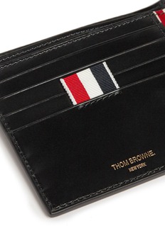 Thom Browne这款钱包采用光滑的黑色真皮制作,左边加上品牌标志性的黑、白、红色条纹罗缎装饰,别具辨识度,内附多个钞票格及卡片格,让您可轻松整理收纳,低调且实用的设计是日常必备配饰。
