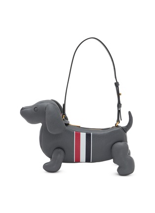 Infuse a playful spirit into your wardrobe with Thom Browne's Dachshund leather bag. Meticulously crafted to resemble your favourite canine, this grained leather bag is perfect for adding a whimsical yet elegant touch to any ensemble.
