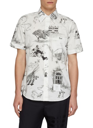 Marking Hector’s tenth year as a Thom Browne icon, this shirt unfolds like a personal memoir in print form. The intricate scenes wrap front to back, pairing storytelling charm with tailored polish for layered looks, from gallery days to refined evenings.