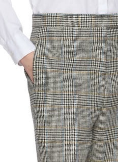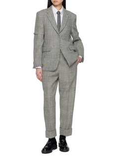 A study in heritage and precision, these hunting tweed pants reflect Thom Browne’s mastery of tailoring. Crafted from pure wool with a structured, tactile hand, they balance classic checks with contemporary refinement. Pair them with a crisp white shirt or a cropped blazer for an effortlessly composed edit.