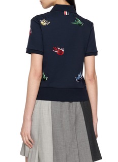 Sketched in vivid satin-stitch flight, this cotton polo reimagines Thom Browne’s signature precision with a poetic softness. Each canary becomes a quiet emblem of resilience—moving with purpose, calm, and colour. A playful yet refined piece that lifts everyday styling with expressive charm.