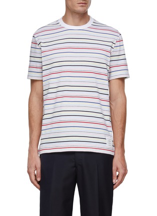 Thom Browne 这款 T 恤精选质感柔软舒适的纯棉面料打造而成。其品牌标志性的拼色条纹元素作为点缀,简约且不乏辨识度,助你松打造时尚休闲造型。