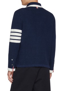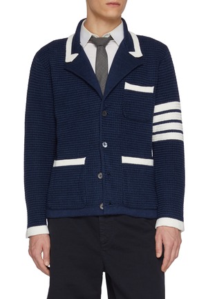 这件开衫是 Thom Browne 标志性美学的具象表达。经典色调承载立体针织工艺,西装翻领注入正装格调,宽松廓形,单穿简约高级,叠搭西装外套则能解锁层次丰富的叠穿新范式。