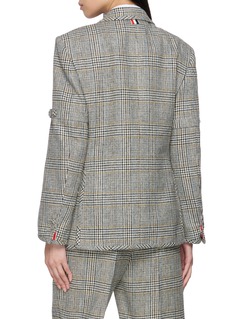 Thom Browne revisits the classic sport coat through a lens of architectural tailoring. Cut with a broader shoulder line to evoke confidence and ease, this blazer is rendered in signature hunting tweed with tonal armbands and self-covered buttons. Every stitch echoes the brand’s artisanal precision and timeless sensibility.