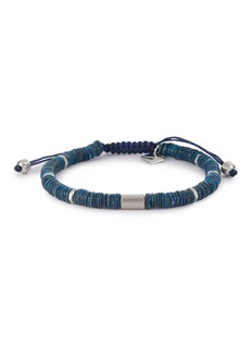 Discover the craftsmanship of the Thompson Artisanal Bracelet, featuring elegantly arranged blue cord segments interspersed with shimmering silver-toned accents. This bracelet combines durability with a touch of sophistication, making it an ideal accessory for both casual and formal occasions. The adjustable design ensures a comfortable fit for any wrist size.