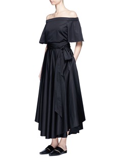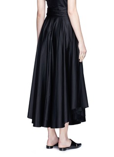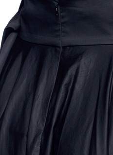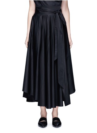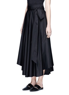 这款半身裙是Tibi最经典的款式,质感细滑的纯棉府绸面料令褶裥裙摆更为立体,U形裙摆加上两边开衩的设计,让双腿于步行间若隐若现,可把裙腰两根束带绑成扭结,修饰腰线同时添上独特细节感。
