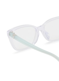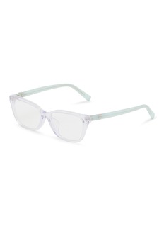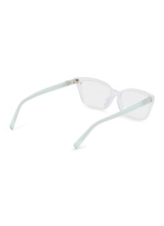Step into a world of understated elegance with these Tiffany & Co. eyeglasses, featuring translucent frames with a subtle hint of the signature Tiffany blue at the temples. These glasses offer a refreshing, modern twist on a classic design, ideal for adding a touch of sophistication to any look. The lightweight and comfortable frame ensures they can be worn effortlessly throughout the day, making them perfect for those who value both style and functionality in their eyewear.