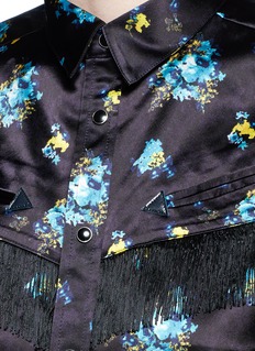 TOGA ARCHIVE这款衬衫以较为挺括的廓形发掘女士们帅气中性的一面,丝质感深蓝色面料配以浸染风格的蓝黄主调抽象印花,散发高贵又前卫的气息。正反面饰以黑色流苏,增添细节变化,更显别致摩登。您可搭配品牌同款长裤,打造随性酷感形象。