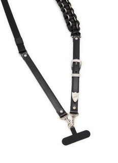 Elevate your accessorising game with the Toga Virilis Phone Strap. This sleek, functional piece combines practicality with high fashion, featuring a robust leather strap intertwined with striking metal chain details. Adjustable and designed to secure your device, it ensures style and safety converge seamlessly.